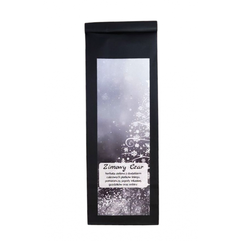 Składniki: herbata zielona Gunpowder, płatki cukrowe (cukier, mąka ryżowa, tłuszcz kakaowy, substancja zagęszczająca (tragakanta)), pomarańcza, jagody inkaskie, trawa cytrynowa, goździk, kwiat granatu, imbir, aromaty