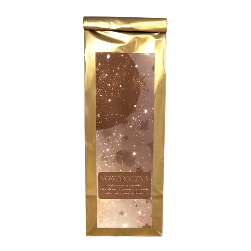 Czarna herbata Ceylon z dodatkiem brzoskwini, igieł świerku, safloru i bławatka białego. W smaku odnajdziemy słodycz brzoskwini przełamaną cytrusową nutą oraz słodkawo-korzenny, delikatnie pikantny aromat cynamonu, który podkreśla zimowy charakter herbaty. Napar urzeka bursztynową barwą i bogatym bukietem świąteczno – zimowych aromatów.