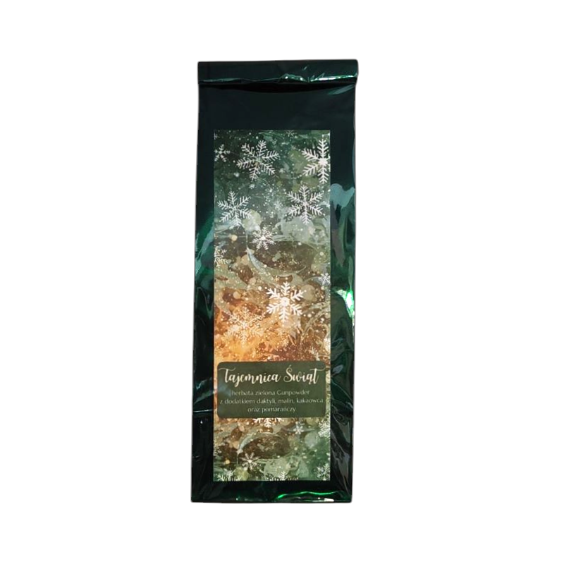 Wygląd: Złocistozielony napar z delikatną mgiełką charakterystyczną dla herbat Gunpowder. W naparze widoczne są suszone owoce, płatki i przyprawy – całość wygląda jak świąteczna kompozycja w filiżance.
