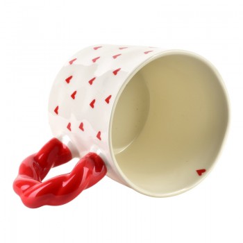 Kubek Mondex MAGGIE - uroczy kubek z serduszkami. Wykonany z wysokiej jakości porcelany, jest lekki, wytrzymały i łatwy w utrzymaniu czystości. Idealny do kawy, herbaty oraz innych gorących napojów. Kubek z serduszkami o pojemności to idealna propozycja dla osób, które chcą wprowadzić odrobinę ciepła i romantycznego klimatu do codziennych chwil przy kawie lub herbacie. Klasyczne białe tło ozdobione czerwonymi serduszkami przyciąga wzrok i doskonale komponuje się z każdą aranżacją kuchni.