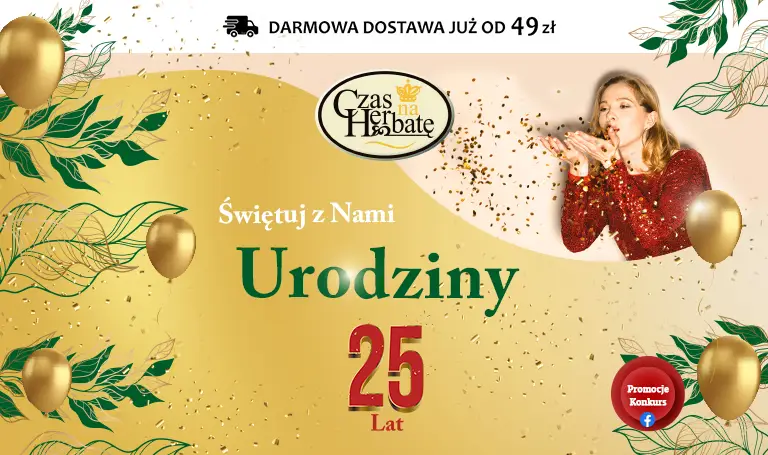 Kup minimum 2 z 4 herbat urodzinowych: 25 Lat Urodzinowa, Kolorowe Konfetti, Madam Butterfly, Hiszpańska Mandarynka, a otrzymasz rabat 50% (minimum 50 g ze smaku).