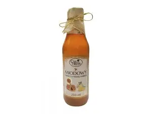 Syrop miodowy ma czysty skład: miód wielokwiatowy pszczeli 80%, sok z cytryny 15% i imbir 5%. Zawiera naturalnie występujące cukry oraz kawałki cytryny i imbiru. Produkt pasteryzowany. Syrop miodowy dostępny w naszych salonach już od teraz. Zapraszamy!