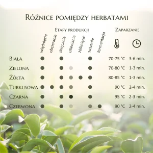 Więcej szczegółów o poszczególnych etapach obróbki herbaty oraz właściwości herbat znajdziecie w osobnych artykułach, w tym tylko muskamy temat, aby przybliżyć różnice między gatunkami.