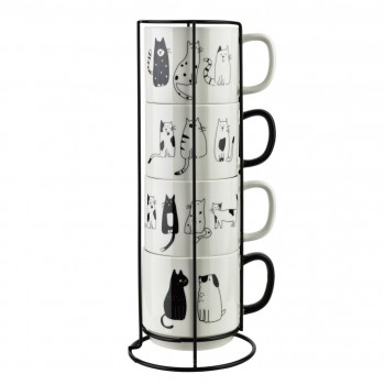 Komplet 4 porcelanowych kubków z kotkami na stojaku – COTTELLO, Affekdesign by MONDEX
