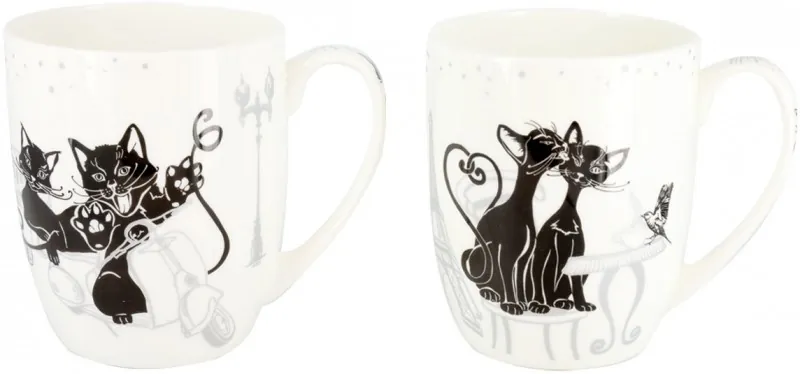 Kubek porcelanowy z czarno-białym rysunkiem yorkshire terriera, w tle widoczne dedykowane opakowanie z napisem „Dogs”.