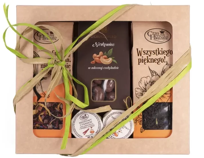 Zestaw prezentowy zawierający herbatę, bakalie...
