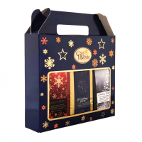 Całość zapakowana w ozdobne pudełko z nadrukiem.