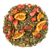 Casablanca - czarna herbata Ceylon High Grown z dodatkiem melisy oraz kawałków jabłek, truskawek i ananasa w połączeniu z naturalnymi aromatami truskawki i ananasa.