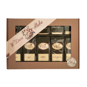 Zestaw degustacyjny to idealna możliwość spróbowania naszych autorskich kompozycji i znalezienia swojego ulubionego smaku. W skład zestawu wchodzi 10 herbat czarnych z dodatkami, każda po 50g. Kompozycje w zestawie: