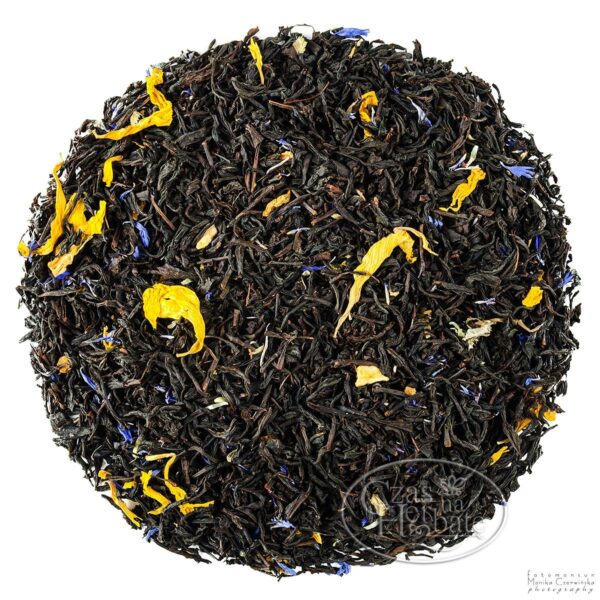 Składniki: herbata czarna Ceylon, skórka cytrynowa suszona, kwiat słonecznika, bławatek, aromat