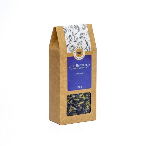 Blue Butterfly Pea, zwany tez niebieskim kwiatem, to kwiaty klitorii ternateńskiej, rośliny rosnącej w klimacie tropikalnym, należącej do grona roślin strączkowych. Roślina od wieków była wykorzystywana w naturalnej medycynie wschodniej, posiada również wiele udowodnionych naukowo właściwości prozdrowotnych: przeciwbakteryjne, przeciwgorączkowe, przeciwzapalne, przeciwbólowe, moczopędne, znieczulające, przeciwcukrzycowe. Polecamy parzenie kwiatów zarówno samodzielnie, jak i w połączeniu z innymi ziołami lub herbatami. Napar z niebieskiego kwiatu ma wdzięczną, szafirową barwę. Polecamy dodawanie go do innych napojów w celu nadania im ciekawego koloru. Ponadto pod wpływem soku z cytryny lub limonki kolor zmienia się na różowofioletowy, co daje bardzo ciekawy efekt - na przykład w drinkach. Naparu można również używać do barwienia potraw takich jak wypieki czy ryż.