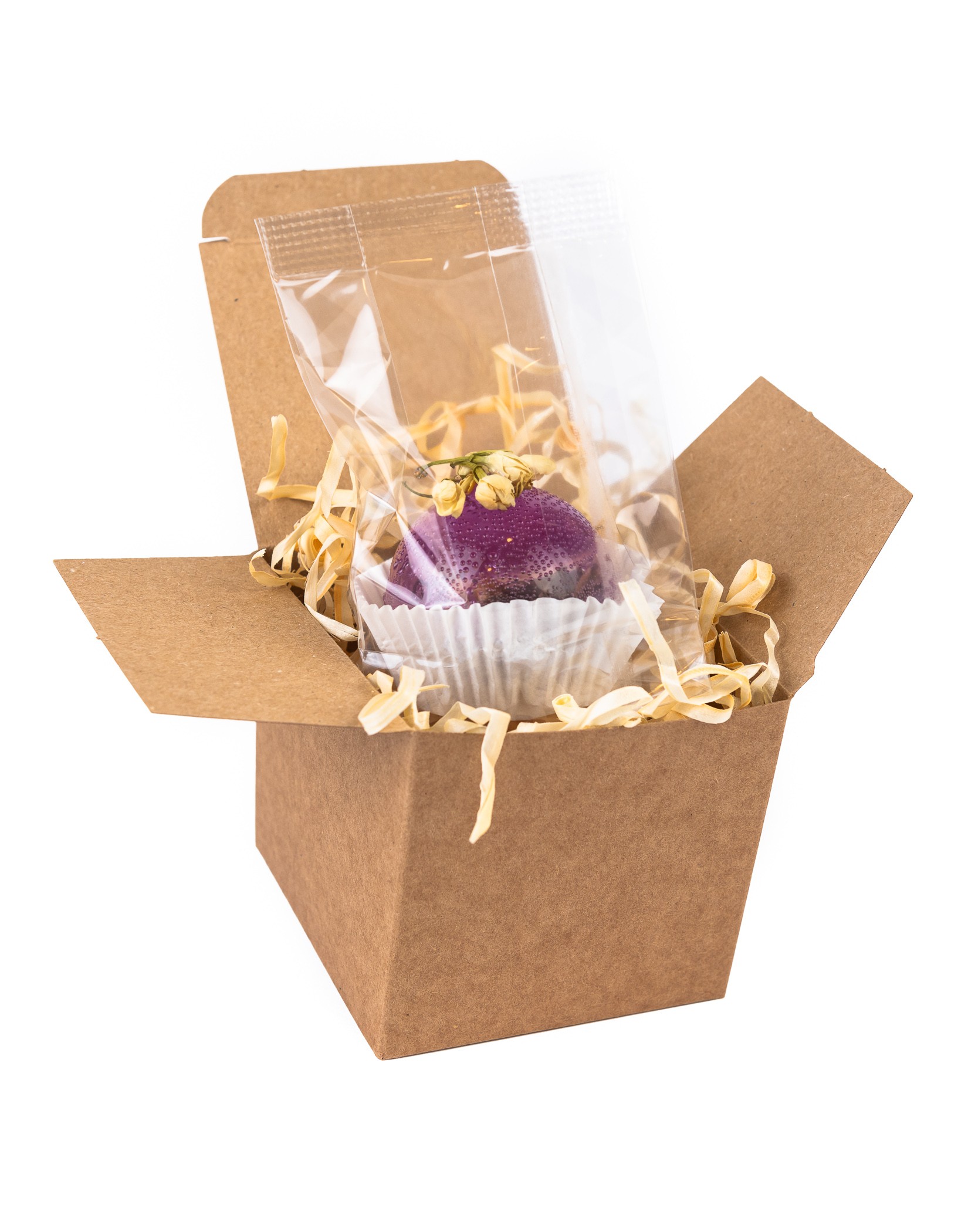W środku kuli znajduje się porcja przepysznej, zielonej herbaty Sencha brzoskwiniowa którą charakteryzuje łagodny smak, w którym przeplatają się słodkie brzoskwini oraz kwiatowe akcenty w postaci nagietka. Porcja suszu zamknięta jest pięknej kuli w fioletowym kolorze. Kula została stworzona z Izomaltu, który dzięki swojej słodkości uzupełnia smak mieszanki, tworząc idealny duet. Izomalt to środek słodzący, charakteryzujący się niską kalorycznością. Często występuje jako zamiennik cukru w słodyczach i innych produktach spożywczych.