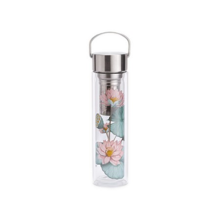 Butelka z podwójną ścianką z serii Flow Tea Padma wykonana jest z wysokiej jakości szkła boro-krzemowego. Posiada wyjmowany, stalowy zaparzacz oraz stalową zakrętkę z uchwytem. Dzięki podwójnym ściankom napój utrzymuje swoją odpowiednią temperaturę przez dłuższy czas. W zestawie znajduje się neoprenowy pokrowiec. Produkt pakowany jest w eleganckie pudełko prezentowe. Pojemność 350-400 ml. Zalecane mycie ręczne. Nie należy używać w mikrofalówkach.