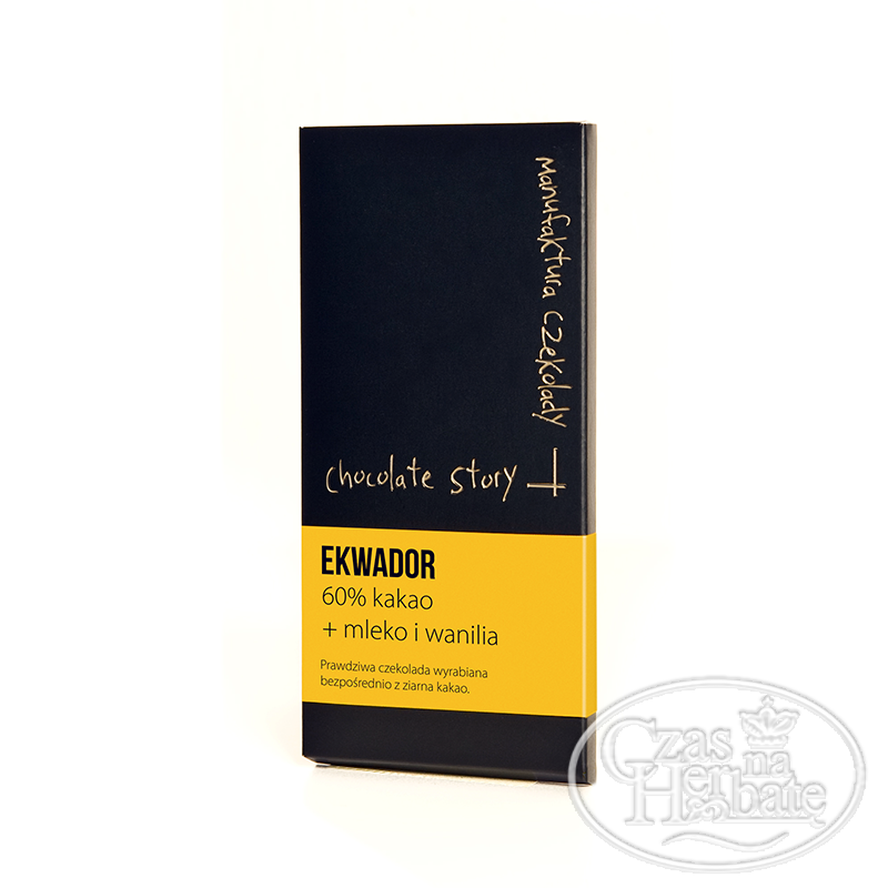 Czekolada mleczna o wysokiej zawartości miazgi kakaowej (60%) z wyczuwalnymi nutami kakao delikatnie przełamane słodyczą wanilii.