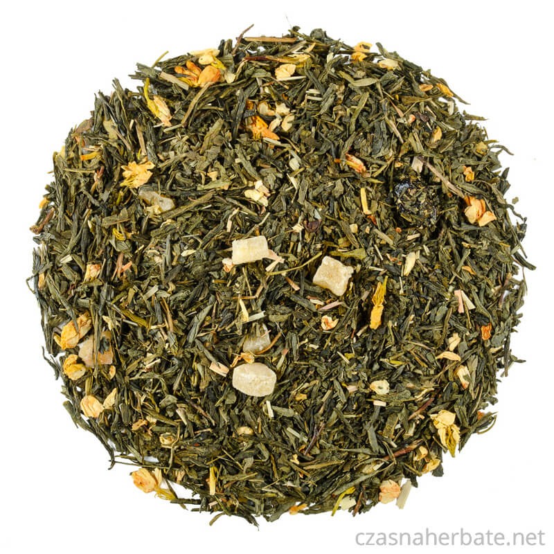 Kompozycja łagodnej zielonej herbaty Sencha połączonej z wyrazistymi kandyzowanymi wiśniami, soczystym ananasem oraz wonnym jaśminem. Jaśmin podkreśla smak owoców, przez co doświadczamy wielu wrażeń podczas degustowania herbaty.