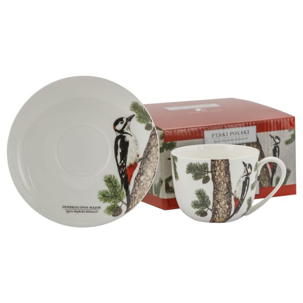 Zestaw filiżanki ze spodkiem z serii Ptaki Polski by Agata Hajdecka, wykonany z wysokiej jakości porcelany kostnej - niska waga i idealna biel marki Marco Polo. Komplet zdobiony motywem Dzięcioła na białym tle. Zestaw zapakowany jest w ozdobne, kolorowe pudełko, co może być doskonałym pomysłem na niebanalny prezent urodzinowy, a także podarunek dla szefa czy nauczyciela, również jako podziękowanie.