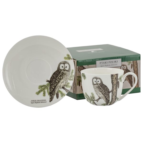 Zestaw filiżanki ze spodkiem z serii Ptaki Polski by Agata Hajdecka, wykonany z wysokiej jakości porcelany kostnej - niska waga i idealna biel marki Marco Polo. Komplet zdobiony motywem Puszczyka na białym tle. Zestaw zapakowany jest w ozdobne, kolorowe pudełko, co może być doskonałym pomysłem na niebanalny prezent urodzinowy, a także podarunek dla szefa czy nauczyciela, również jako podziękowanie.