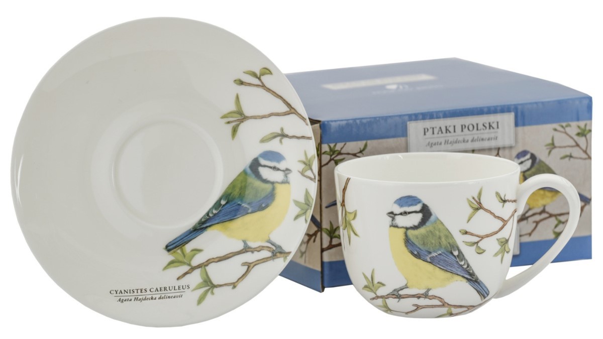 Filiżanka z talerzykiem Sikora 280ml Ptaki