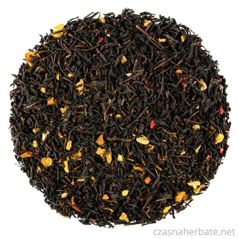 Składniki: herbata czarna OP, skórka cytrynowa suszona, jabłko suszone, malina liofilizowana, aromaty