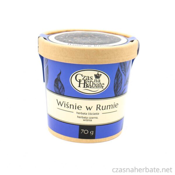 Herbaciany kubek zawiera herbatę Wiśnie w rumie 70g