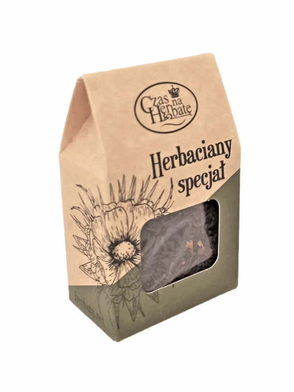 Składniki: herbata czarna OP, skórka pomarańczowa suszona, mandarynka liofilizowana 2%, płatki róży, aromaty