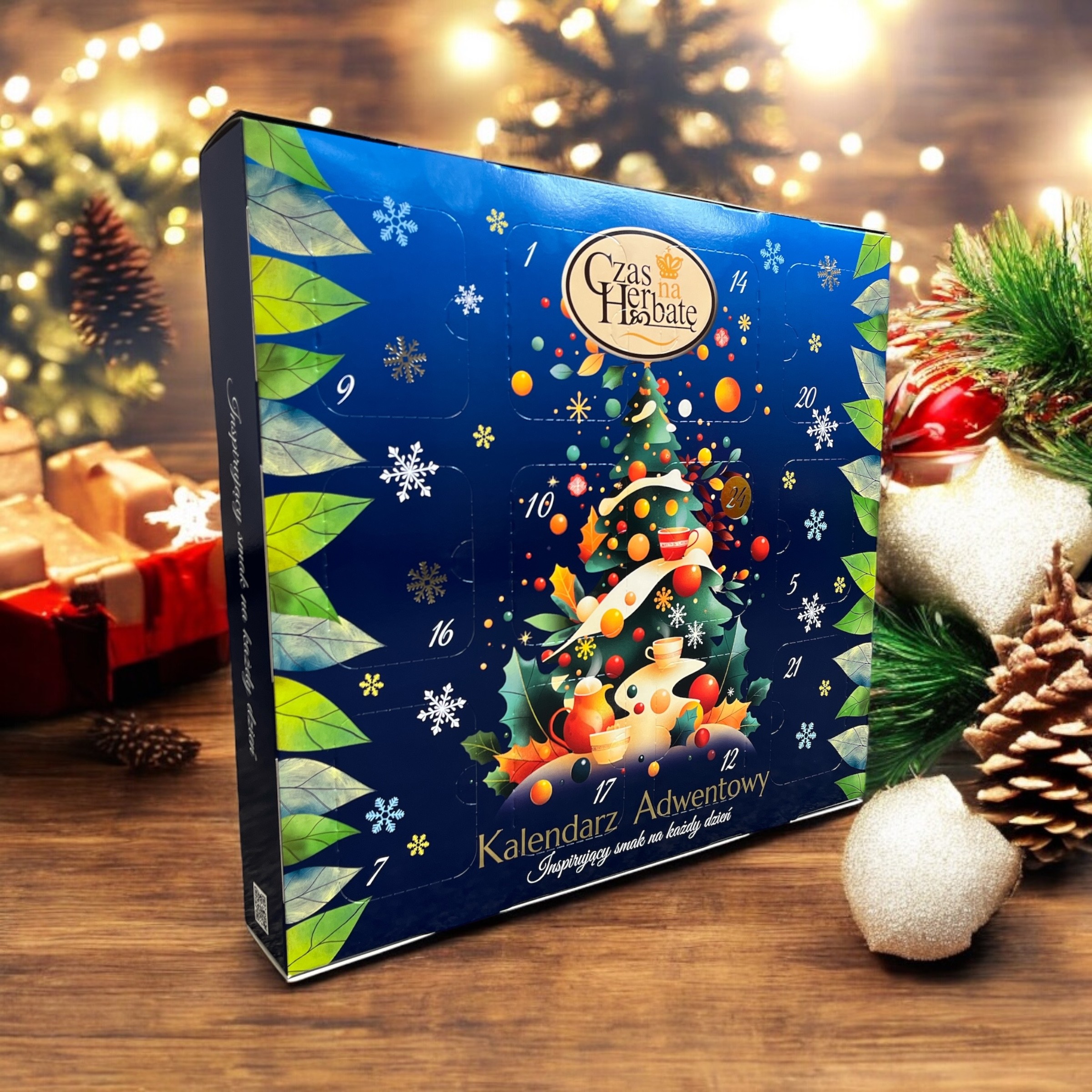 Przygotuj się na wyjątkowy czas oczekiwania, dzięki naszemu kalendarzowi adwentowemu z herbatą liściastą. Każde z 24 okienek skrywa starannie wyselekcjonowaną mieszankę herbaty, która umili Ci zimowe wieczory i pozwoli odkryć nowe smaki każdego dnia. Od klasycznych czarnych herbat, przez aromatyczne zielone mieszanki, aż po egzotyczne herbaty z dodatkiem owoców i przypraw – każdy dzień to nowa niespodzianka. Podaruj sobie lub bliskim codzienną chwilę relaksu i przyjemności, zanurzając się w świecie herbaty, który rozgrzeje serce i wprowadzi w świąteczny nastrój.