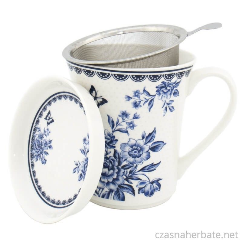 Kubek ceramiczny z sitkiem i pokrywką 300ml.