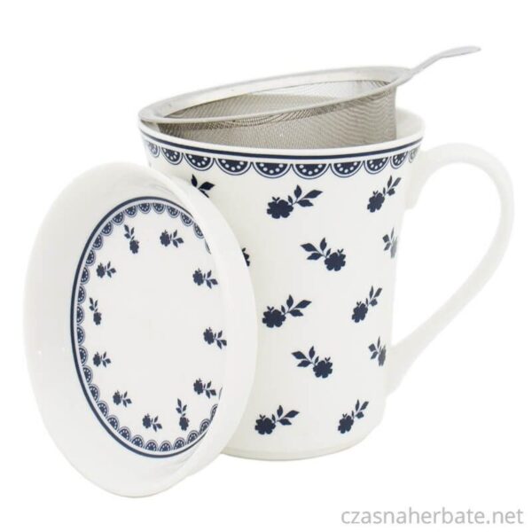 Kubek ceramiczny z sitkiem i pokrywką 300ml.
