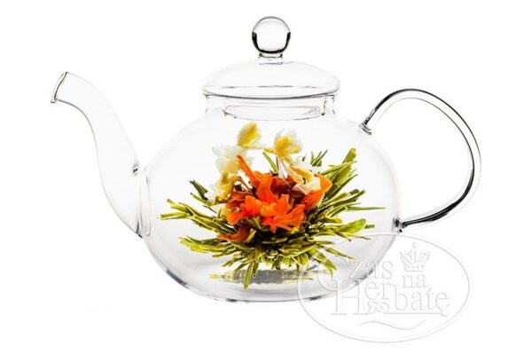 Herbata biała Silver Needle ręcznie zwijana wraz z kwiatem lilii, jaśminu. Rozwinięta kula zachwyca pomarańczowo-kremowymi kwiatami. Herbata pochodzi z chińskiej prowincji Fujian. Przed zaparzeniem herbata ma kształt niepozornej kulki, która umieszczona w gorącej wodzie przekształca się w piękny rozłożysty kwiat. Możemy więc dopieścić nie tylko podniebienia delikatnym smakiem unikatowych kompozycji, ale także nacieszyć oczy prawdziwym spektaklem, jakim jest rozkwitanie pączka w dzbanku. Niezwykłe specjały, mogą być nie tylko kwitnącym ukoronowaniem wystawnej kolacji, lub obiadu z przyjaciółmi. Świetnie nadają się także na prezent, będąc zaskakującą niespodzianką.