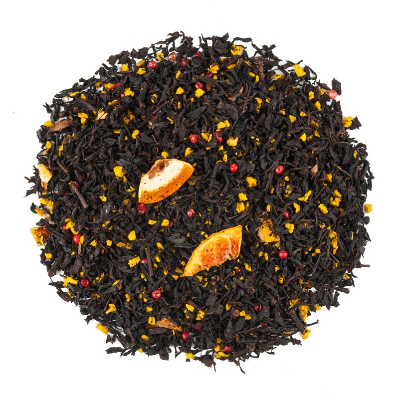 Czarna herbata OP z grejpfruta, mango, anyżu, goździka i pieprzu czerwonego.