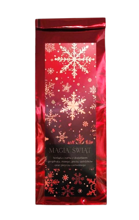 Każdy z nas tęskni przez cały rok za magicznym czasem świąt. Na myśl przychodzą bliscy, przyjaciele, radosne spotkania… Aby zatrzymać ten wyjątkowy, nadchodzący czas na dłużej, przygotowaliśmy dla Państwa wyjątkową, czarną herbatę łączącą ze sobą aromatycznego grejpfruta, egzotyczne mango, okraszoną gwiazdkami anyżu, goździkami oraz czerwonym pieprzem