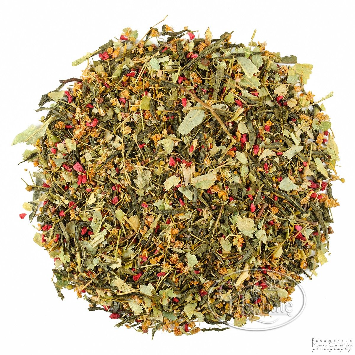 Składniki: herbata zielona Sencha, lipa 35%, malina liofilizowana 3%, aromat