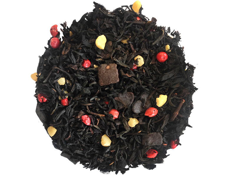 Składniki: Herbata czarna Ceylon, migdał, kawałki czekolady, aromat, pieprz czerwony