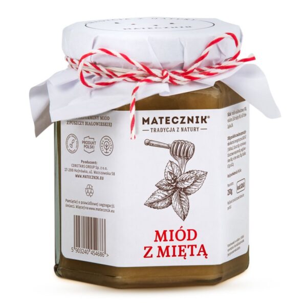 Miód z miętą to wyjątkowe połączenie naturalnego miodu o słodkim, kwiatowym aromacie oraz świeżej, orzeźwiającej mięty. Łączy w sobie delikatność nektaru z subtelną, ziołową nutą, która nadaje mu niepowtarzalny, chłodzący charakter. Jest to idealny wybór dla osób poszukujących harmonii smaków, łączących naturalną słodycz z odświeżającym akcentem mięty. Doskonale sprawdzi się jako dodatek do napojów – zarówno gorących herbat, którym doda delikatnego aromatu, jak i chłodnych lemoniad, podkreślając ich letni, orzeźwiający charakter. Można go również wykorzystać jako składnik deserów, koktajli czy marynat do mięs, nadając potrawom delikatny, słodko-ziołowy posmak.