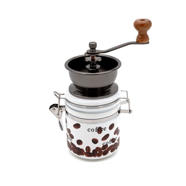 Młynek ręczny z pojemnikiem na zmieloną kawę.