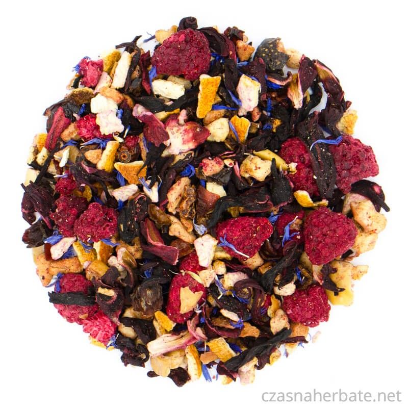 Składniki: Jabłko, skórka pomarańczowa, hibiskus, skórka dzikiej róży, aromat, malina, bławatek niebieski.