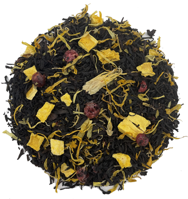 Herbata czarna z dodatkiem dyni, czerwonej porzeczki i nagietka.