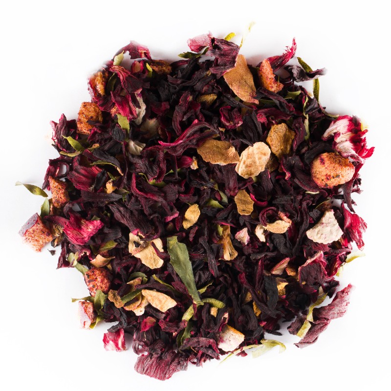 Składniki: hibiskus, skórka cytrynowa suszona, śliwka liofilizowana, imbir, limonka liść , aromat