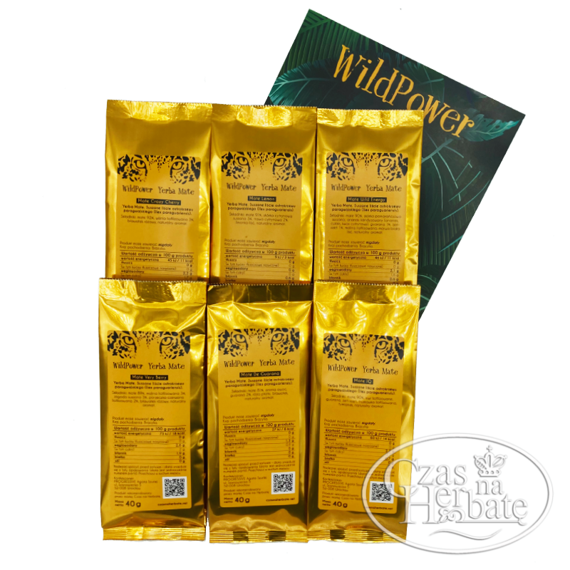 Zestaw składający się z sześciu rodzajów mate po 40 gramów: Lemon (skórka cytrynowa, trawa cytrynowa, limonka), IQ (kiwi, guarana, żeń-szeń), Wild Energy (skórka pomarańczowa, ananas, guarana, żeń-szeń) , Crazy Cherry (wiśnia), De Guarana (aronia, guarana, płatki róży), Verry Berry (malina, jagoda porzeczka). To idealna możliwość spróbowania naszych autorskich kompozycji i znalezienia swojego ulubionego smaku.