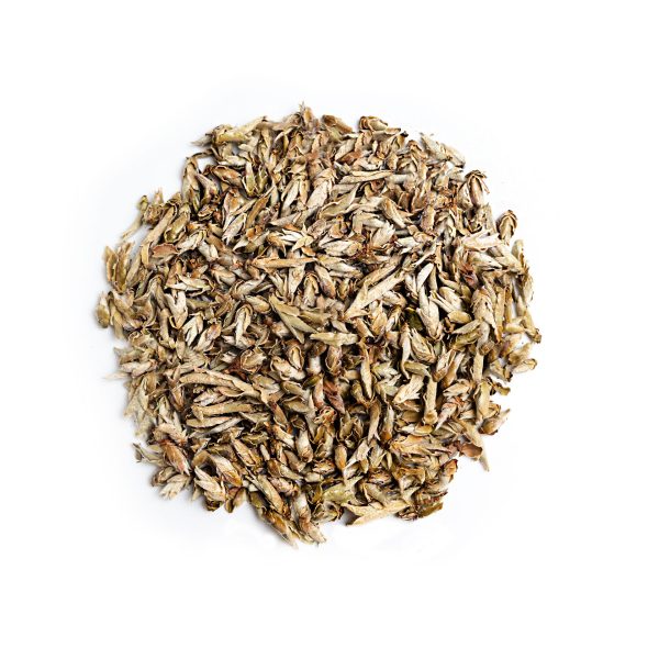 Jasny, klarowny napar o słomkowo-złotym kolorze. Same pąki są niewielkie, jasnozielone do srebrzystych, przypominające małe zamknięte pączki.