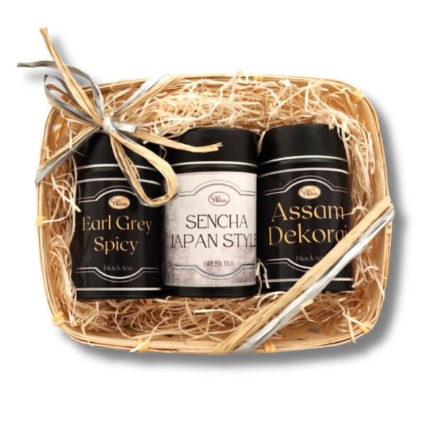 Zestaw prezentowy zawiera trzy herbaty w puszkach :