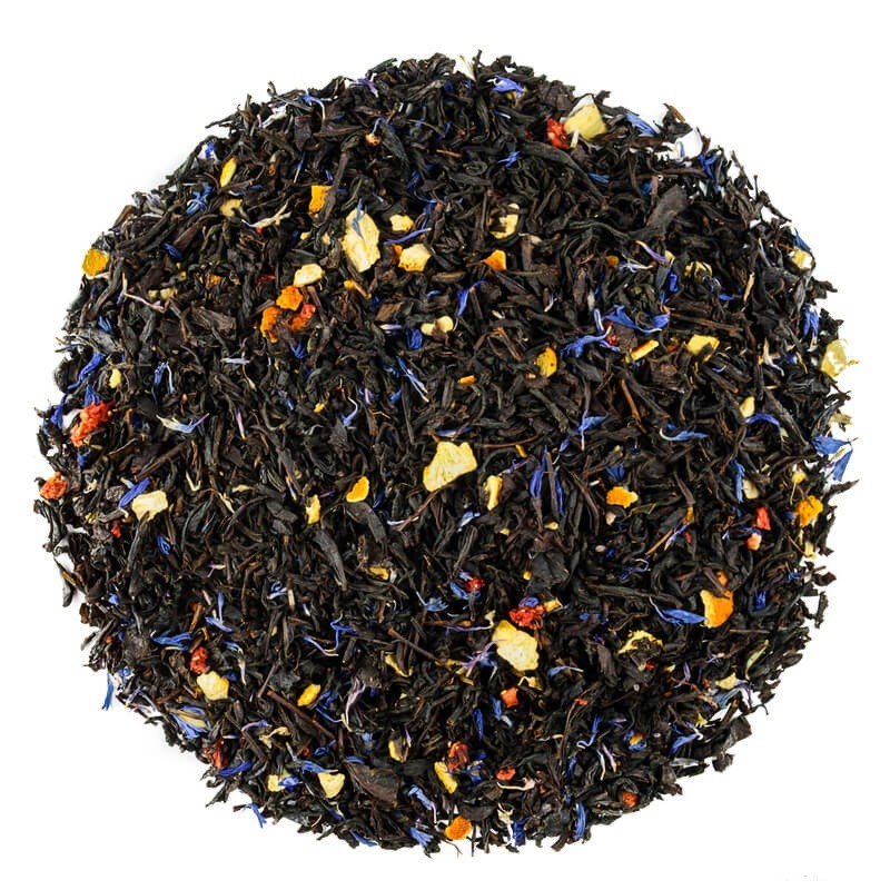 Earl Grey Niebieski Kwiat - tradycyjna herbata Earl Grey dopełniona aromatycznymi, błękitnymi płatkami bławatka. Wspaniale komponuje się również z mlekiem i odrobiną cukru trzcinowego, tworząc doskonałe uzupełnienie codziennych posiłków czy spotkań przy odrobinie czegoś słodkiego.