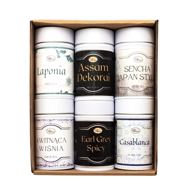Sześć starannie wybranych herbat zamkniętych w eleganckich puszkach. Idealny zestaw do degustacji, odkrywania nowych smaków lub jako gotowy prezent dla miłośników herbaty.