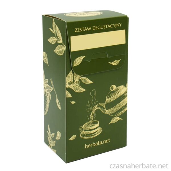 Herbaty są zapakowane w foliowe torebki. Całość zapakowana w firmowy kartonik o wymiarach: 7,5 x 5,5 x 15,5 cm