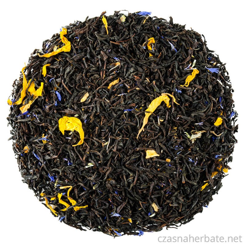 African Queen - wysokogatunkowa herbata czarna Ceylon z dodatkiem nagietka, bławatka i skórki cytrynowej.
