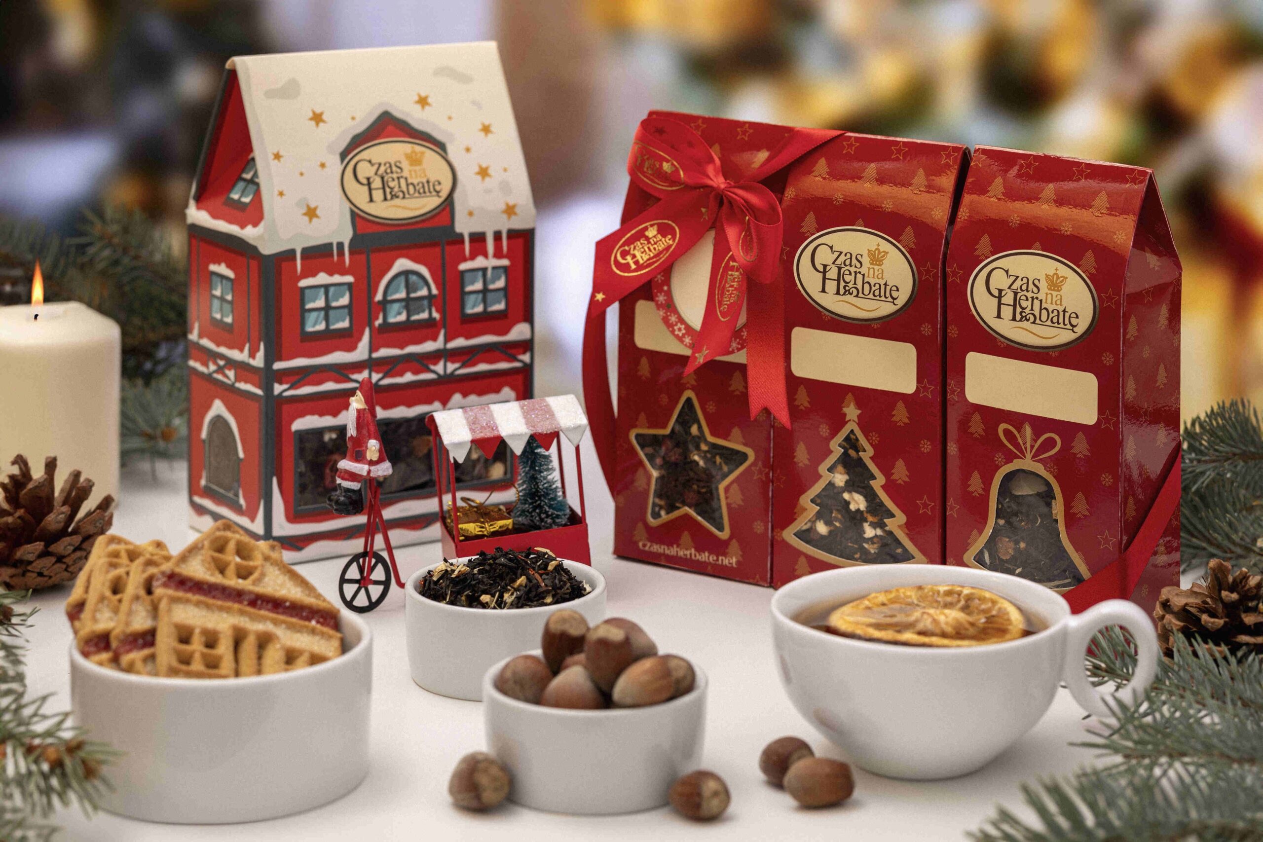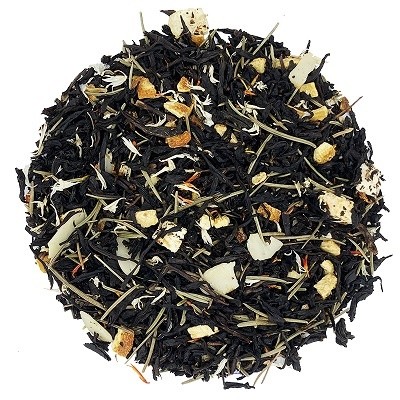 - Herbatę czarną Noworoczna z dodatkiem brzoskwini, igieł świerku, safloru i bławatka białego 80g