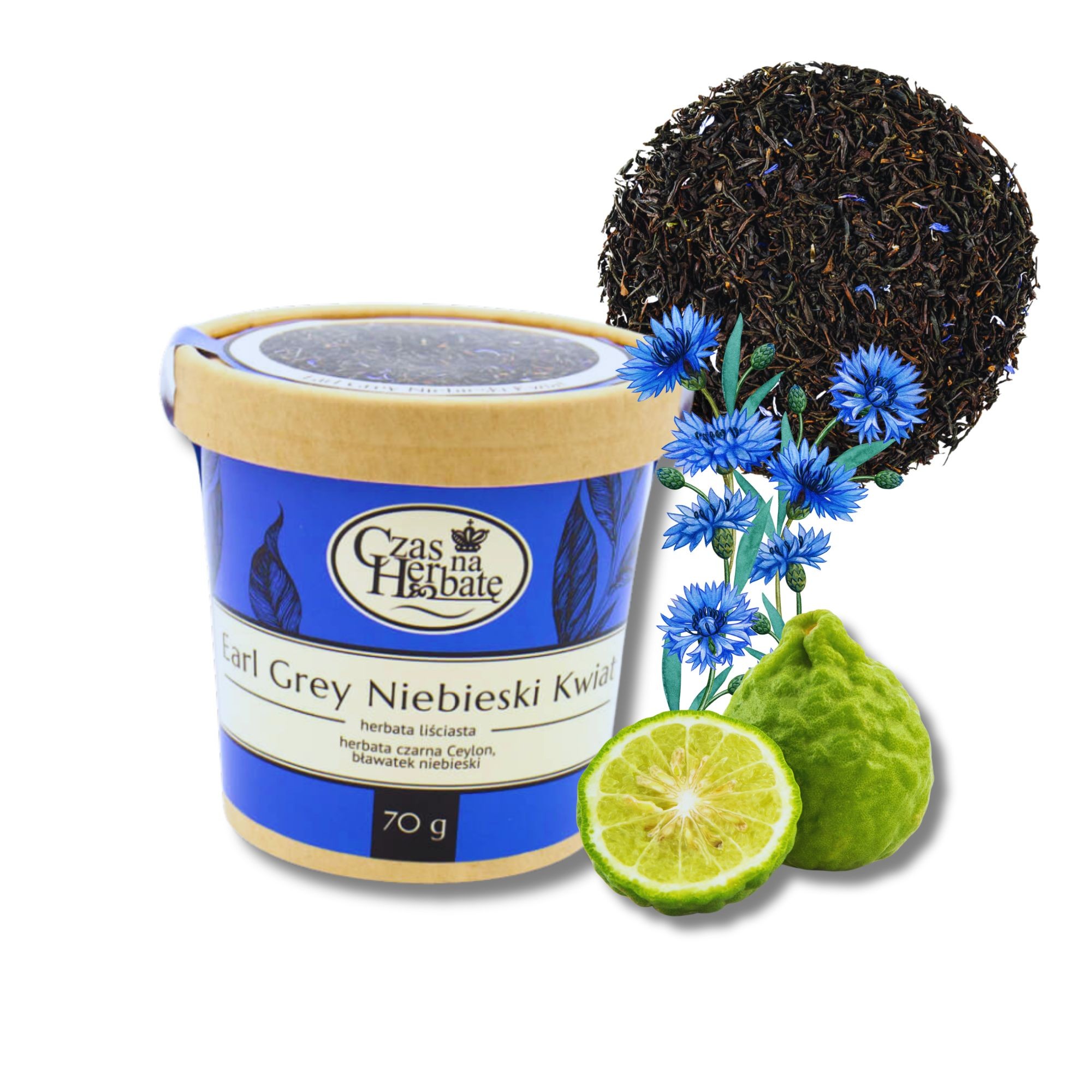 - Herbaciany kubek zawiera herbatę Earl grey Niebieski kwiat 70g,