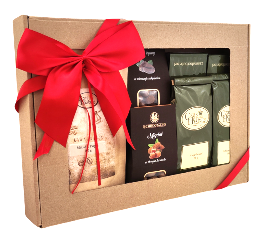 Zestaw prezentowy ze słodkościami.